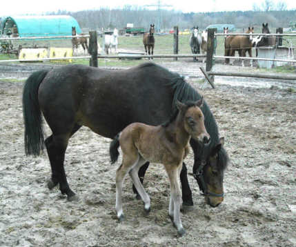 Joy hat am Ostersamstag Ihr Fohlen,nach dem diese Jojo geboren hatte, ein Hengstfohlen bekommen.