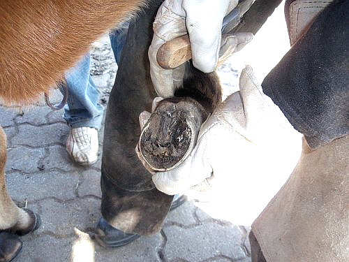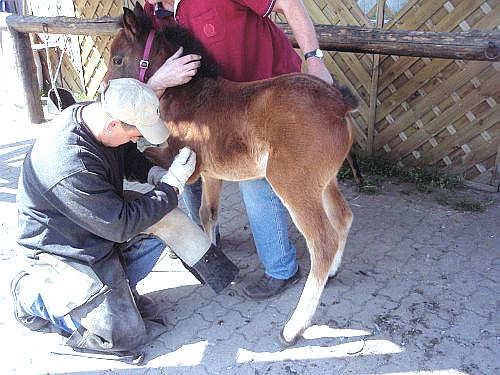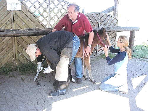 Jo Jo das erste Mal beim Hufschmied mit 4 Wochen